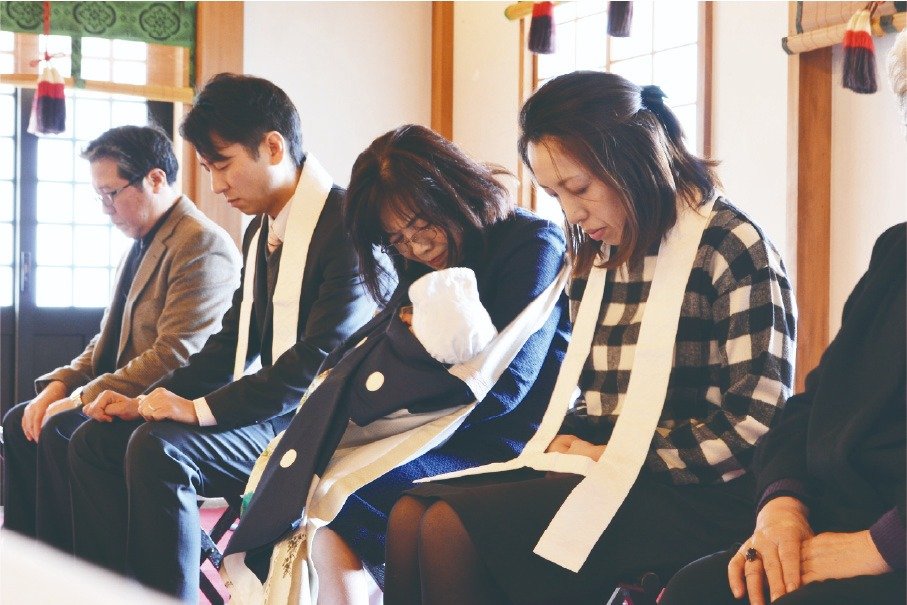 ご神前で赤ちゃんをお披露目し、元気に幸せに育ちますようにとご祈祷を受けます。
