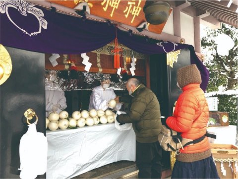 1月10日の例大祭では午前9時より縁起物「かぶ」をおわけしております。また、かぶ汁などを振舞って多くの人々で賑わいます。