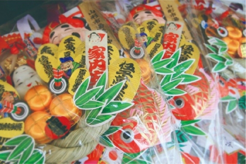 山形冬の風物詩である「初市」は、江戸時代初期より約400年の歴史があり、縁起物を求めに県内外から多くの人手で賑わいを見せます。その「初市」の守護神が市神神社の神様です。御神体は自然石の安山岩で八重事代主をお祀りしております。