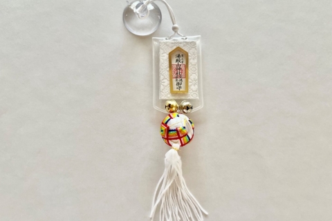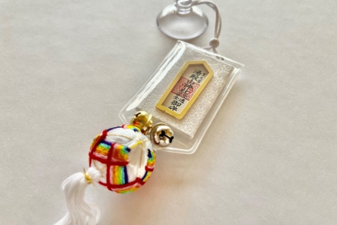 七色虹色の毬つきの御守です。(車両用吸盤付き)