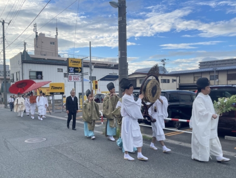 8月15日例大祭当日は、神宿から神社まで行列を組み、神社に着き次第分霊を社殿に納め、例大祭の斎行となります。全国でも珍しい神事です。