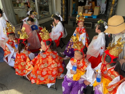 昨年よりコロナ禍も明け、4年ぶりに神輿渡御並びに稚児舞巡行が再開されましたが、本年は更に、子供神輿を5年ぶりに復活させ、より賑々しく例大祭を斎行致したく存じます。